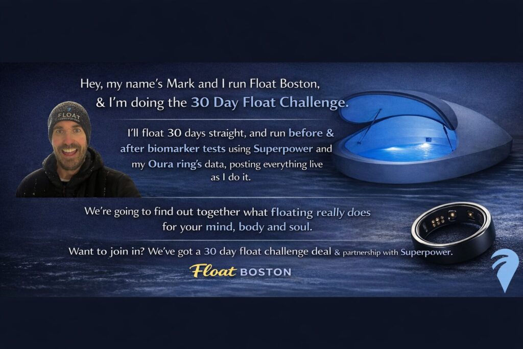 I’ll float once per day for 30 consecutive days and share what happens in real time — the good, the neutral, and anything unexpected. You’ll find that information as well as the data from my Oura ring and Superpower at the end of this page and it will be updated daily starting on the first day end ending when I get my final blood test results.