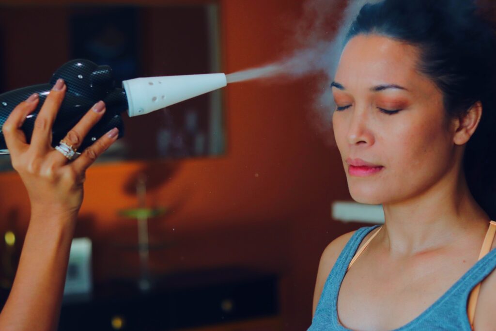 The cooling fog gently blankets the skin with a fine mist of cold air, extending the benefits of cryotherapy without direct contact. It feels light, soothing, and refreshing—never harsh. This step helps evenly distribute the cooling effect, enhance skin tightening, and create a smooth transition into deeper treatment, improving comfort and overall results.