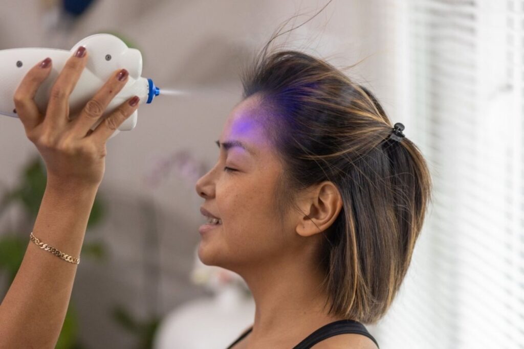Targeted cryotherapy delivers controlled cold to the treatment area, creating an immediate tightening and refreshing sensation. Most clients describe it as cold but invigorating, with a quick return to warmth as circulation increases. We use this step to help firm the skin, calm surface inflammation, and activate the tissue so it responds better to the steps that follow.